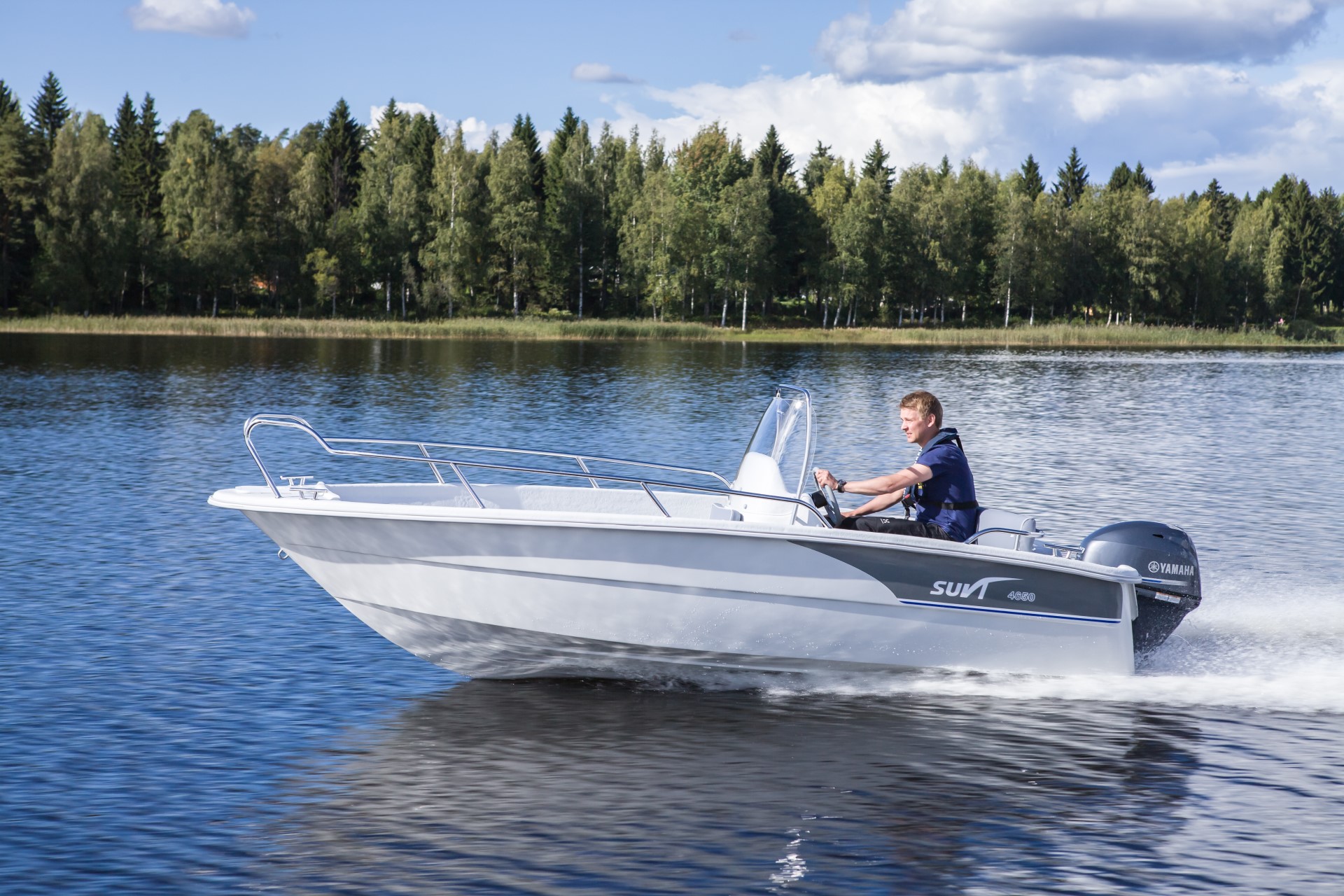 Suvi 46 on sadevesityhjenevä malli, jossa on erinomaiset ajo-ominaisuudet ja todella suuret säilytystilat mm. 140 cm pitkä tila esim. vapoja varten. Tässä moottoriveneessä on vakiona kaiteet, tuulilasi ja uimaportaat. Pitkärikiselle moottorille. Moottorisuositus max. 40 hv.