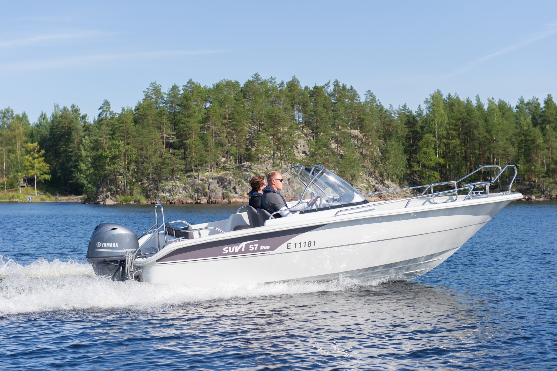 57 Duo on suurella taka-avotilalla, hyvillä vakiovarusteilla varustettu malli mökki-, kalastus- ja yhteysveneeksi saaristoon ja suuremmille järville. Suuri takatila toimii hyvin esim. kalastuksessa ja lisävarusteena saatavana olevan pöydän avulla evästauotkin hoituvat vaivatta.