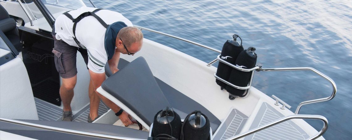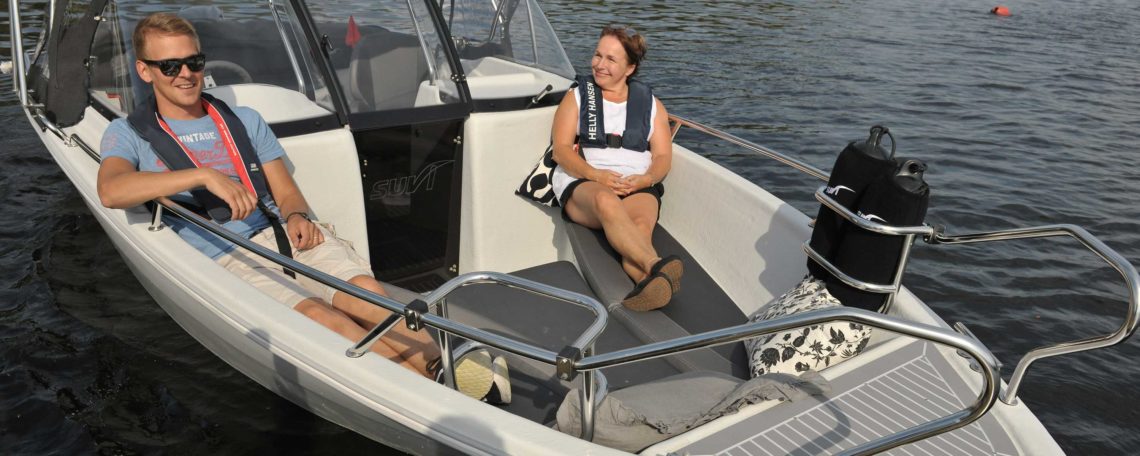 käytettävissä etupenkin selkänojan aukosta. Keulakanteen on helppo läpipultata vaikka keulamoottori ”taivasankkuri”. Keulamoottorin johdoille valmis putkitus keulasta välipohjan alla takatilaan. Keulan avotilaan on saatavana lisävarusteena irrotettava säilytyslaatikko, joka toimii samalla vaikka heittokalastuksessa aputasona ja huvikäytössä auringonottotasona ja jopa kalasumppuna. Tekniset tiedot samat kuin Suvi 57 Duo mallissa