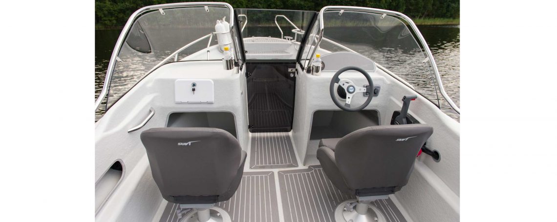 kaksiosainen kuomu. Kaksi pitkää säilytystilaa esim. vavoille. Keulakansi on kiinteä ilman luukkua. Etusäilytystila
