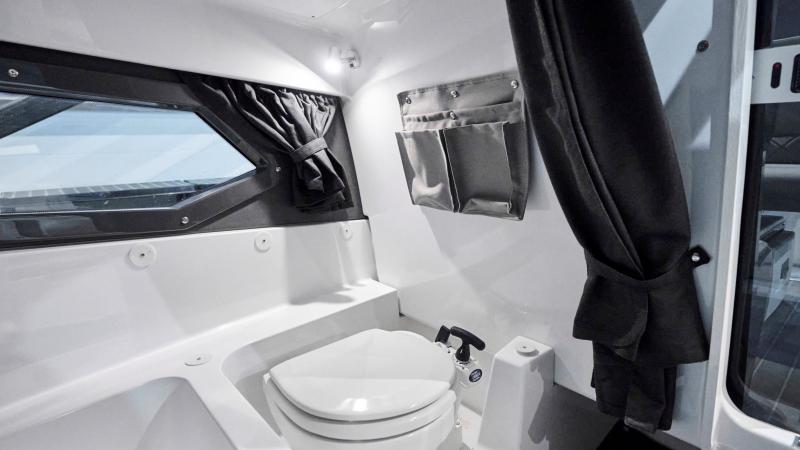 Veneessä on lukittavalla liukuovella varustettu kajuutta, johon suuret runkoikkunat ja avattava kattoluukku tuovat valoa. Kajuutta sopii mainiosti kahden aikuisen nukkumapaikaksi, samoin kuin lasten päiväunipaikaksi ja retkitavaroiden säilytykseen. Kajuutan vuoteen alla on suuri säilytystila ja asuttavuutta täydentää lisävarusteena saatava wc.