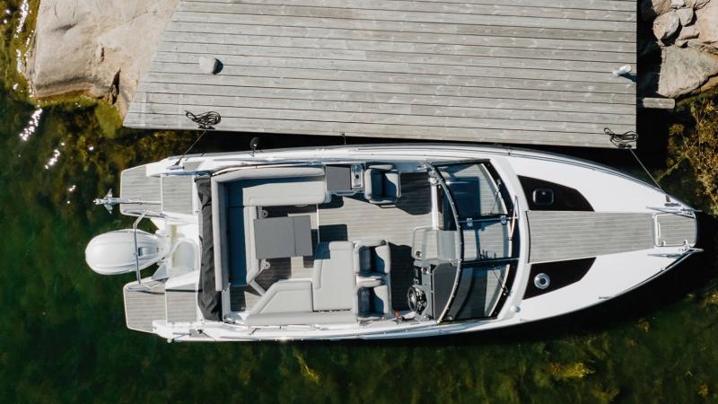 Uutena lisävarusteena on saatavilla bimini, joka tarjoaa avotilaan miellyttävän varjon helteisenä kesäpäivänä. Biminin saa asennettua peräkuomun tilalle ja sijoitettua kuomutalliin.