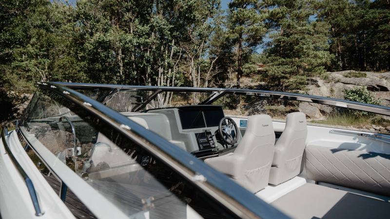 Yamarin 88 DC on viimeistelty kokonaisuus, jonka tyylikkyys täydentyy ruostumattomasta teräksestä valmistetun tuulilasin kehyksen sekä ohjauspulpetin kahden valtavan, 16-tuumaisen näytön myötä. Kahden Yamarin Q -näytön ansiosta kuljettaja saa toiselle näytölle täysikokoisen, havainnollisen merikartan samalla kuin toisella näytöllä voidaan esittää vaikkapa pelkästään moottorin mittaristotiedot.