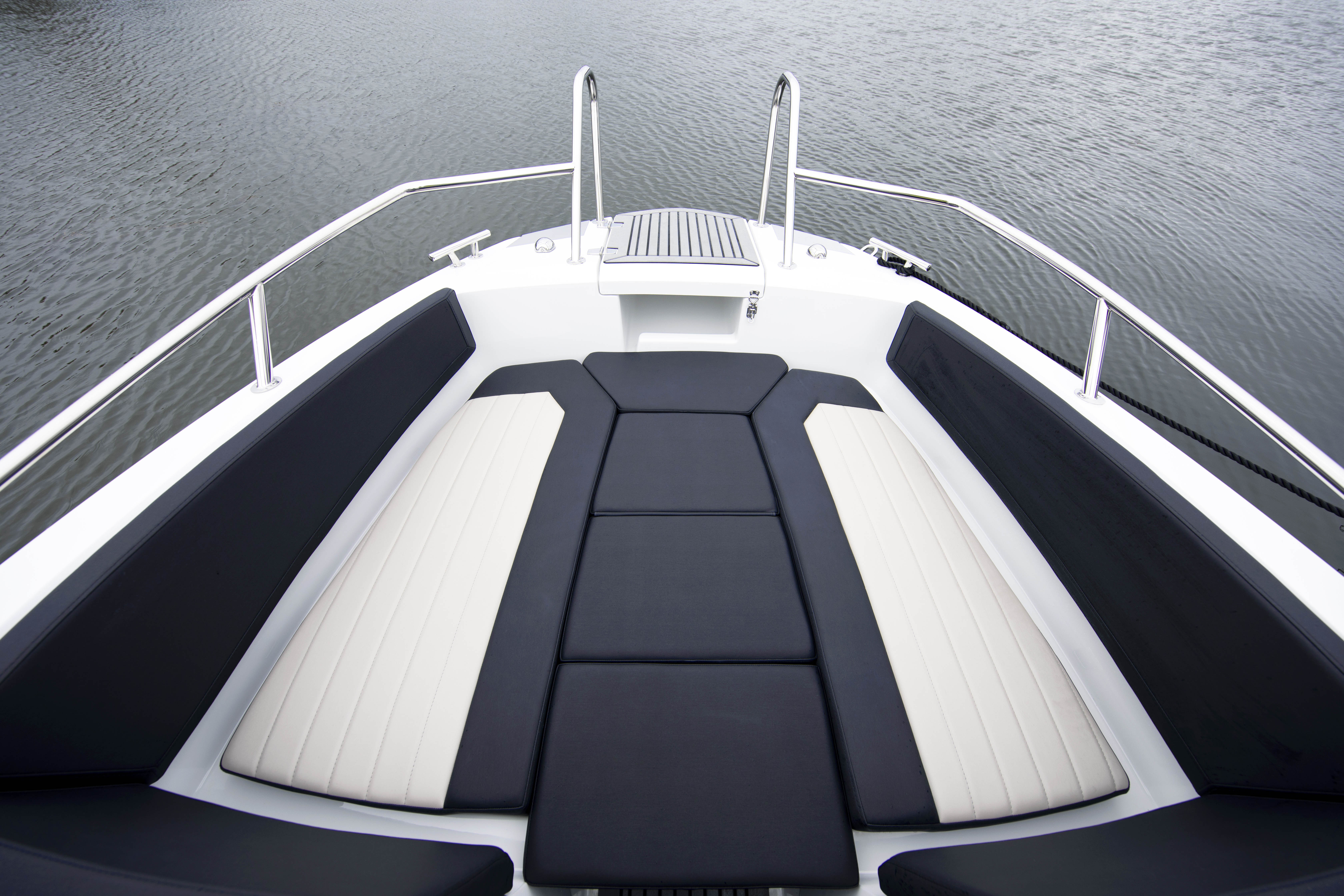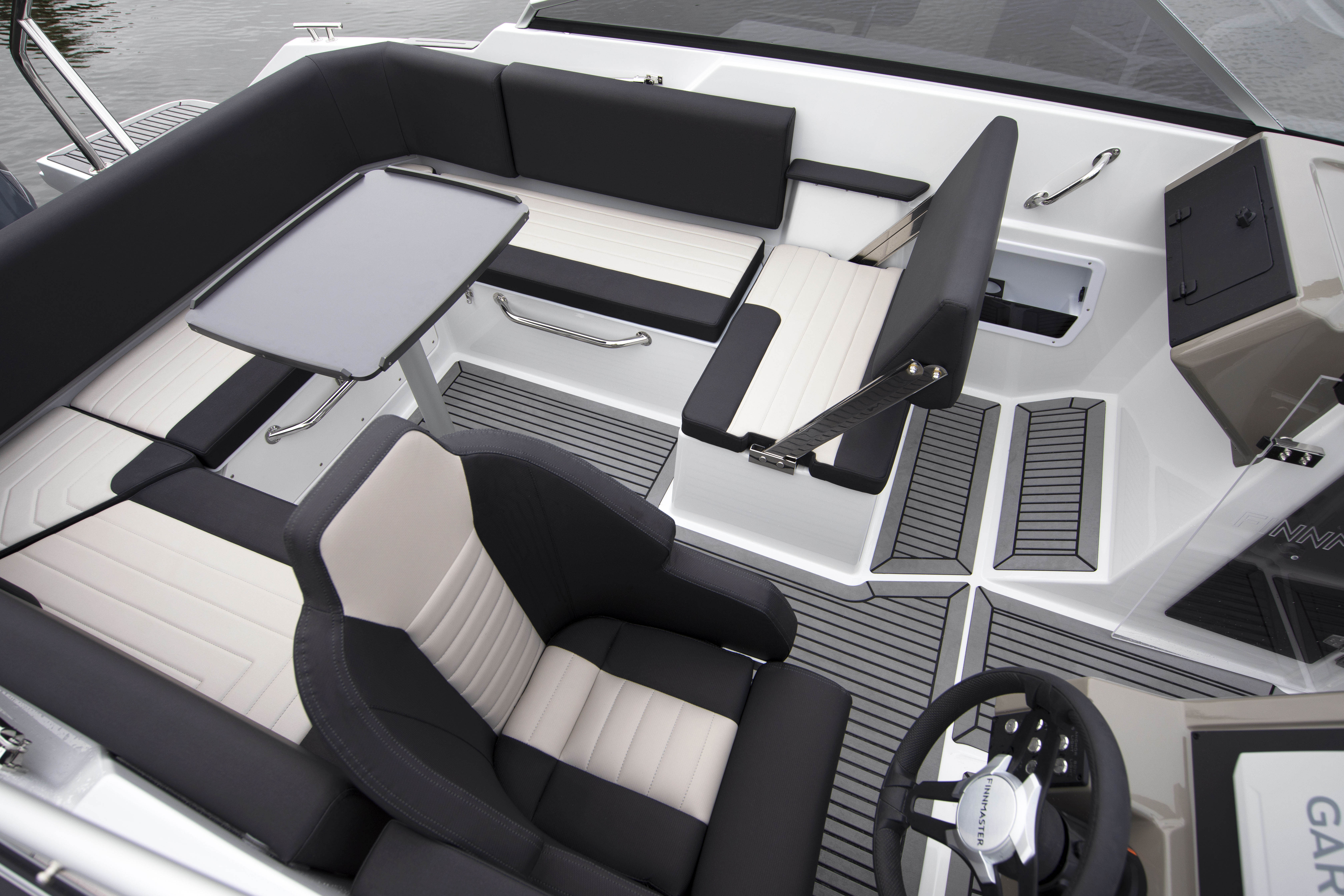 Uusi Finnmaster R6 on monipuolinen vene aurinkoisiin kesäpäiviin. Tämä vene soveltuu erinomaisesti päiväveneilyyn, vesiurheiluun, kesämökki- ja yhteyskäyttöön. Tässä bowriderissa on helppo liikkua, runsaasti mukavia istumapaikkoja rentoon oleskeluun, joko takaosan suurella U-sohvalla, tai keulan istuinryhmässä. Lisäpatjojen ansiosta saat muodostettua aurinkovuoteen kumpaankin istuinryhmään. Penkkien alta löytyy runsaasti säilytystilaa vaikkapa vesisuksille sekä monta järkevää yksityiskohtaa, jotka tekevät veneilystä helppoa ja turvallista koko perheelle. Finnmaster R6 on täydellinen kesävene, joka auttaa sinua irrottautumaan arjesta.