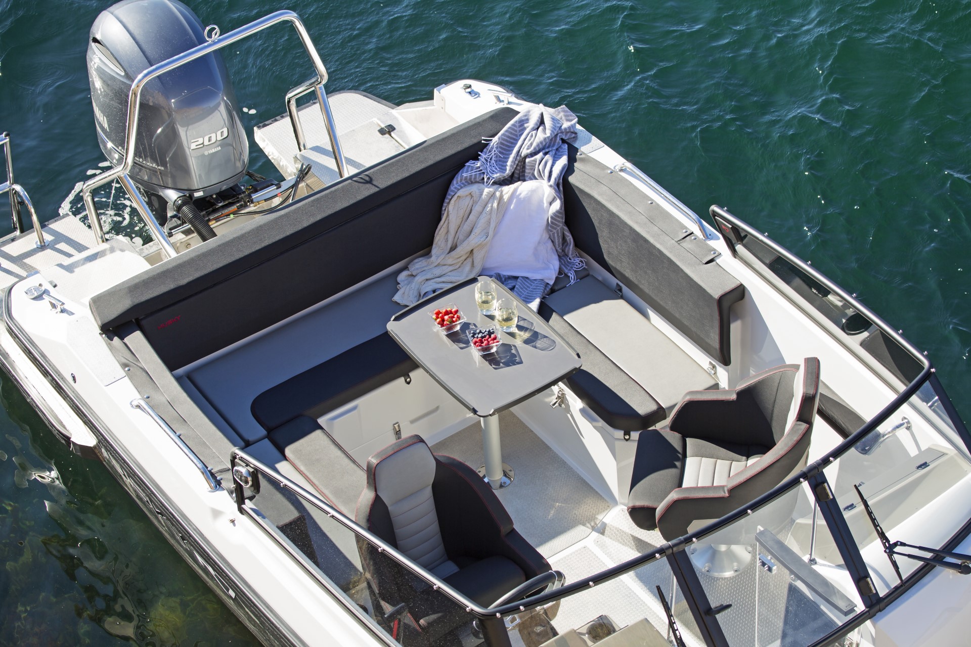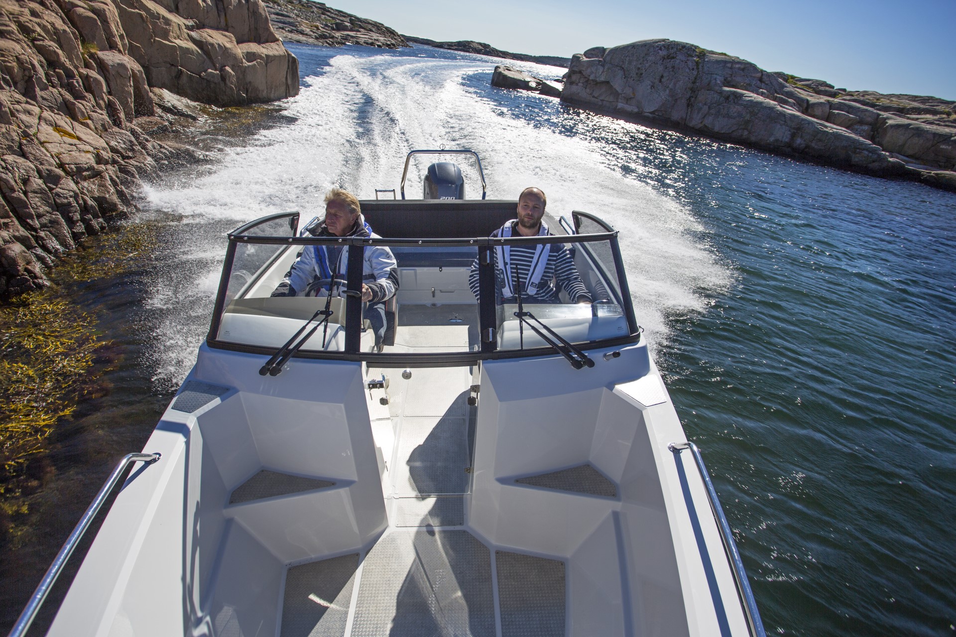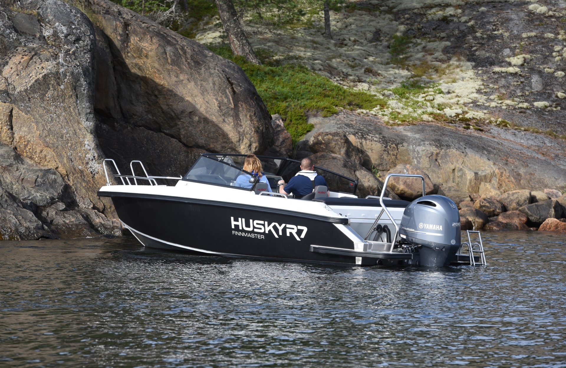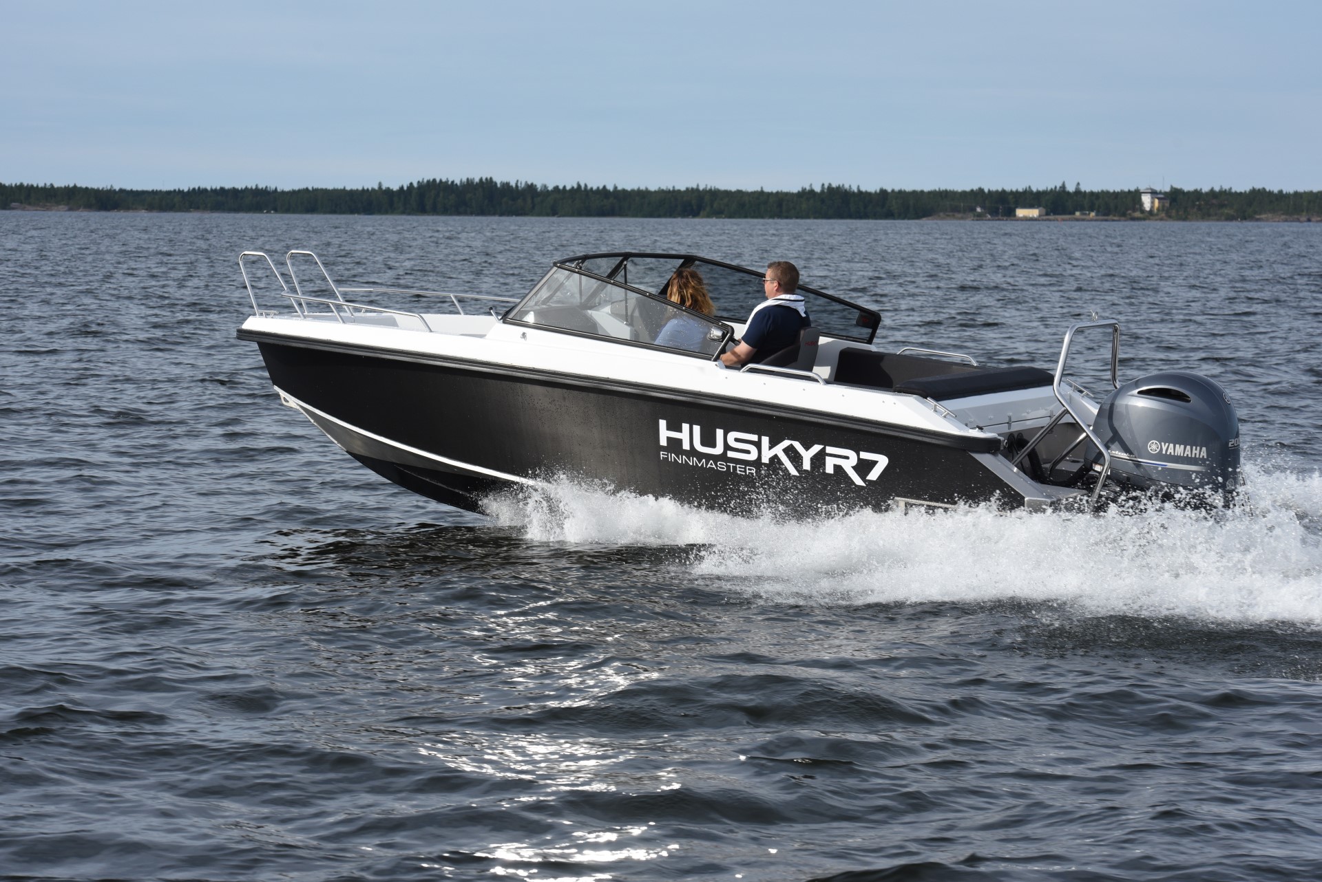 Hiljainen ja vakaa Finnmaster Husky R7 -alumiinivene sopii mainiosti vaikkapa saaristoon suuntautuville tutkimusmatkoille. Monipuolisessa Finnmaster Husky R7 -alumiiniveneessä kaikki matkustajat istuvat suojassa korkean tuulilasin takana. Alumiininen runko kestää kovemmankin kelin ja kehnommalla säällä avuksi tulee näppärästi esiin saatava suojakuomu. Finnmaster Husky R7:n avoimella keulakannella on siistit säilytystilat lepuuttajille, mukavat istuimet ja reilunkokoinen U:n muotoinen sohva, joka muuntuu aurinkokanneksi käden käänteessä. Finnmaster Husky R7 -alumiinivene on täydellinen perhevene koko päivän mittaisille vesireissuille.