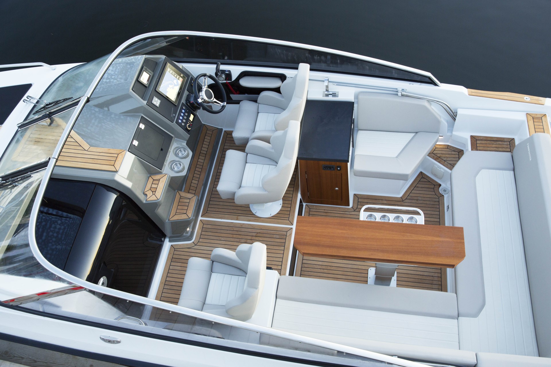 Toisinaan ei tarvitse tinkiä mistään. Veneesi voi olla yhtä aikaa sekä urheilullinen että mukava. Emme ole jättäneet mitään pois suunnitellessamme Finnmaster T-sarjan ylpeydenaihetta Finnmaster T8:a. Tässä ylellisessä venemallissa yhdistyvät ainutlaatuiset ajo-ominaisuudet, kaikki meille tunnusomaiset Smart Design–ratkaisut sekä parhaat materiaalit. Vuosien kokemukselle olemme luoneet tinkimättömän venemallin sinulle, joka haluat parasta. Palkitussa ja monipuolisessa daycruiserissa voit ensin syödä päivällistä perheen kesken ja sitten muuttaa ruokailutilan nopeasti ja sujuvasti yhdeksi sataman makeimmista aurinkotasoista. Auringon painuttua mailleen koko perhe voi viettää yön suuressa kajuutassa, jonka varustukseen kuuluu erillinen wc-tila